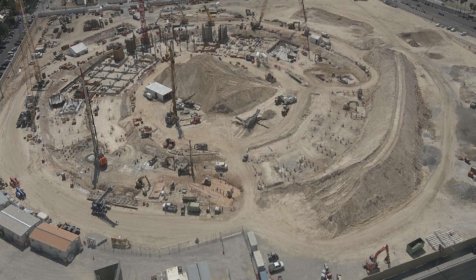 A view of the A’s Las Vegas ball park construction at the former Tropicana Hotel and Casino site on Sat Sep 6, 2025 at 1pm PT (A’s live stream camera still)