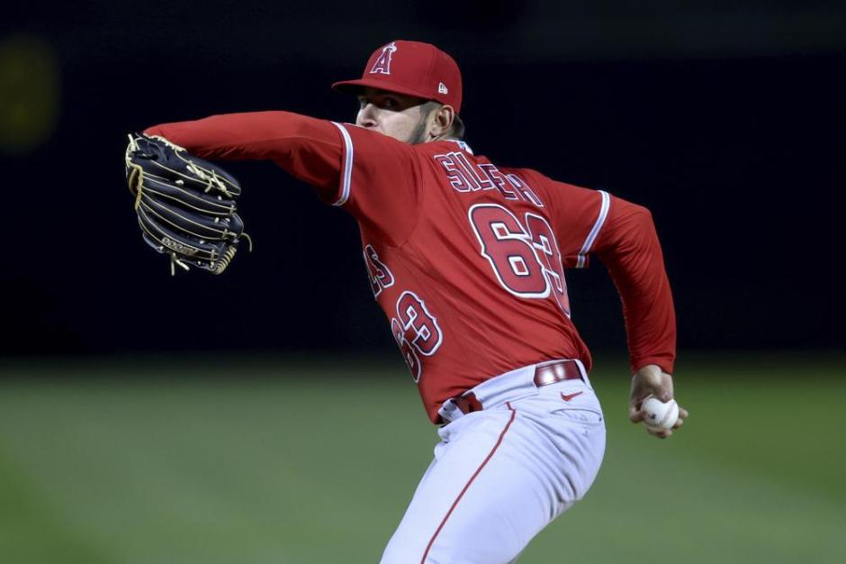 Los Angeles Angels’ Chase Silseth deals against the Oakland Athletics during the bottom of the sixth inning at the Oakland Coliseum on Fri May 13, 2022 (AP News photo)