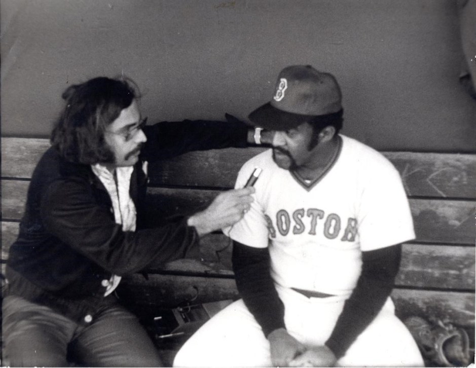 The author Amaury Pi Gonzalez (left) interviewing former Boston Red Sox pitcher Luis Tiant in 1977 (photo from Amaury Pi Gonzalez)