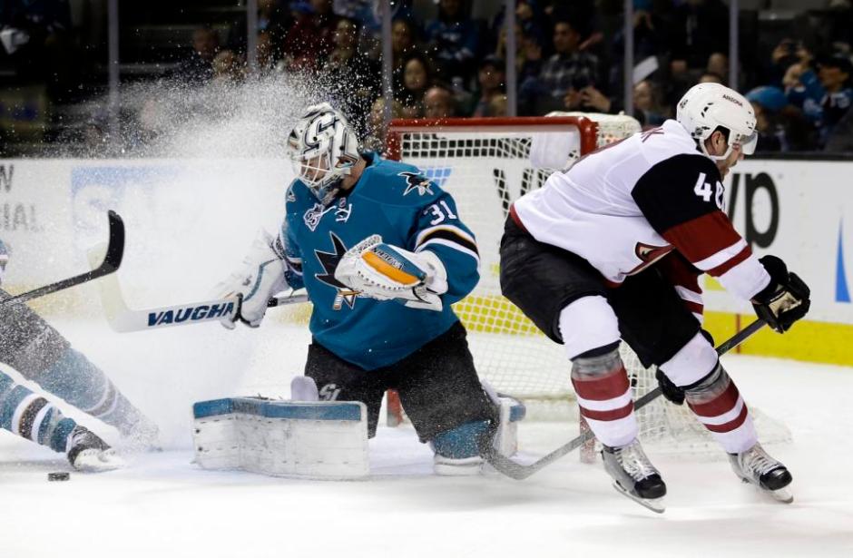 The Coyotes came out for the second hungry. They started with a couple of prolonged sieges to finish up their power play. Then Martin Hanzal intercepted a pass in the neutral zone and skated in alone to cut the Sharks’ lead in half. The goal came just 1:58 into the second, with an assist going to Tobias Rieder.