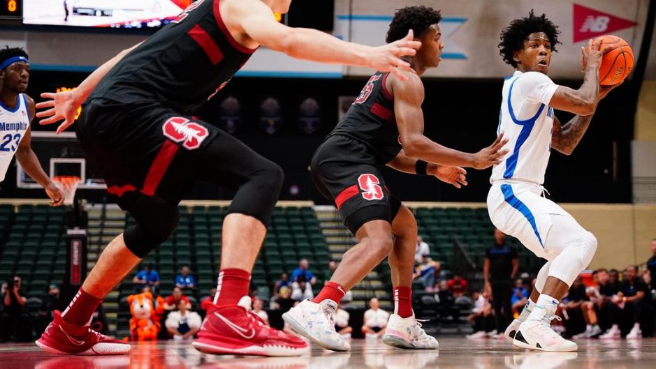 The Memphis Tigers drive on the Stanford Cardinal in the ESPN Invitational in Orlando on Sun Nov 27, 2022 (photo by USA Today)