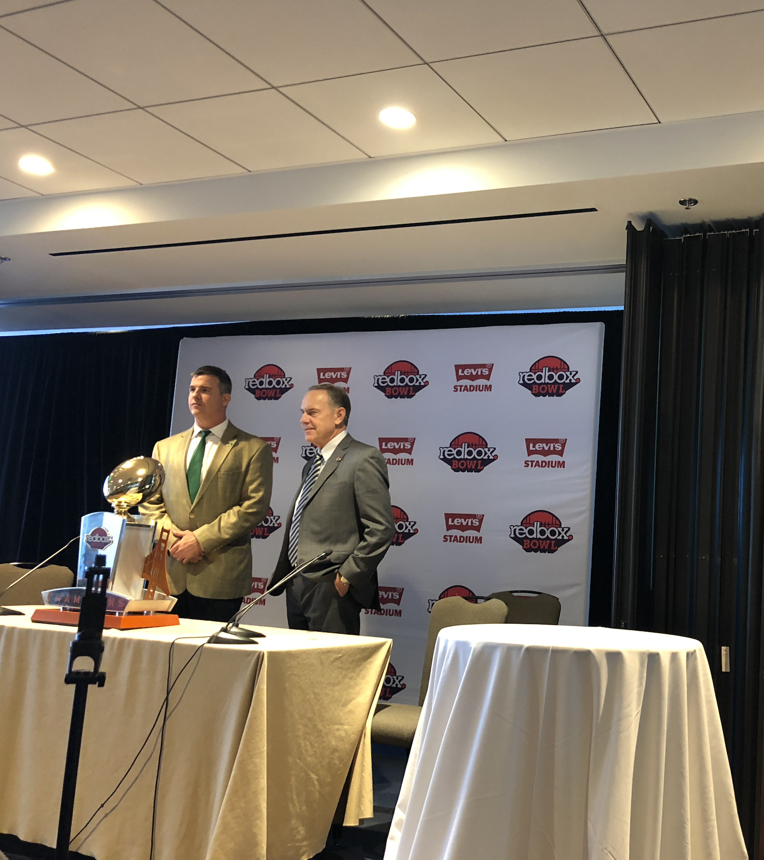 Oregon head coach Mario Cristobal and Michigan State head coach Mark Dantonio at the Redbox Bowl press conference on Friday (photo by Eric He)