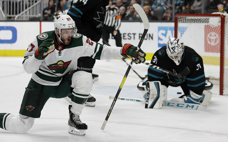 Nick Bjugstad cut the Sharks’ lead back down to one at 16:47. The teams were playing four-on-four after Jordan Greenway and Nikolai Knyzhov went to the box for matching roughing penalties. Bjugstad posted himself in front of the net for a tip around Mario Ferraro and the Sharks goalie. Assists went to Jared Spurgeon and Ryan Suter.