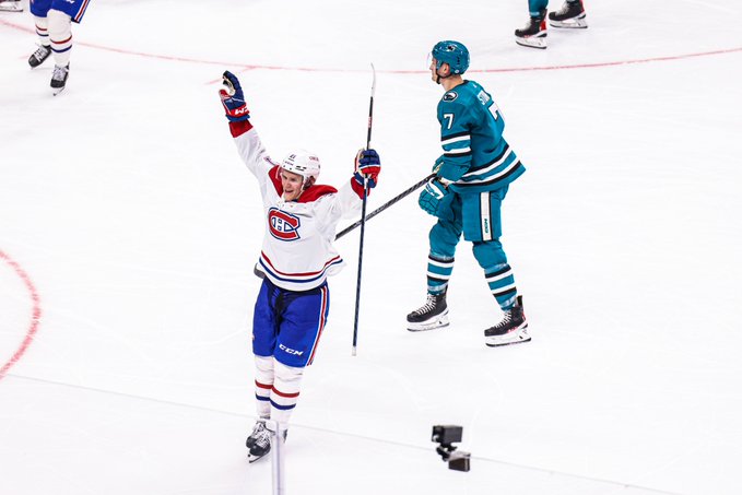 The Canadiens pulled their goaltender with more than five minutes left in the third. 90 seconds later, the Sharks had not been able to push the puck out of the zone even once. The gambit paid off for Montreal. Mike Matheson scored with a slap shot from the middle of the blue line to make it 3-2. Assists went to Cole Caulfield and Nick Suzuki.