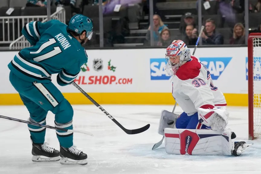 The San Jose Sharks defeated the Montreal Canadiens 3-2 on Thursday, ending a 12-game losing streak at the Bell Centre in Montreal. Luke Kunin, Fabian Zetterlund and Nick Okhotiuk scored for the Sharks. Mackenzie Blackwood made 33 saves for his first road win of the season. Brendan Gallagher and Josh Anderson scored for the Canadiens. Sam Montembeault made 32 saves in the loss.