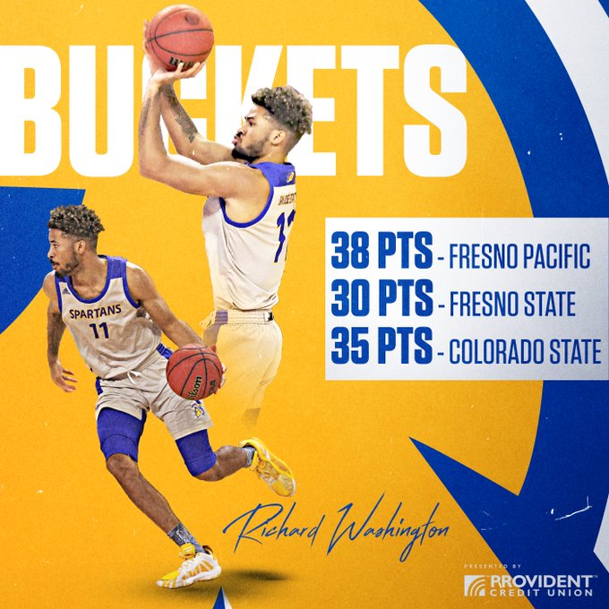 SJSU fell to 2-9, 0-7 MW. Richard Washington led all scorers with 35 points.