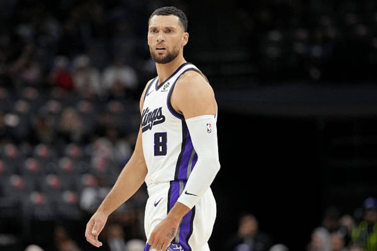 Zach Lavine #8 of the Sacramento Kings looks on against the Toronto Raptors in the first half of an NBA preseason basketball game at Golden 1 Center on October 08, 2025 in Sacramento, California. (Mandatory Photo Credit: Thearon W. Henderson/Getty Images)