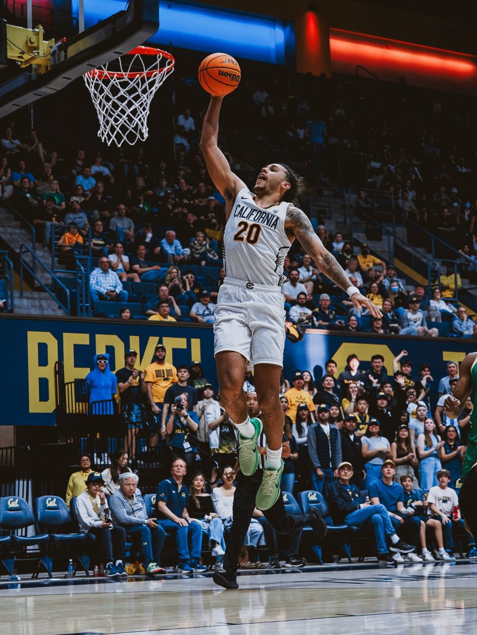 Cal Bears Jaylon Tyson (20) goes for a layup against the Oregon Ducks at Haas Pavilion in Berkeley on Sat Feb 24, 2024 (Cal Bears photo)