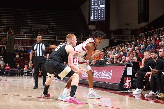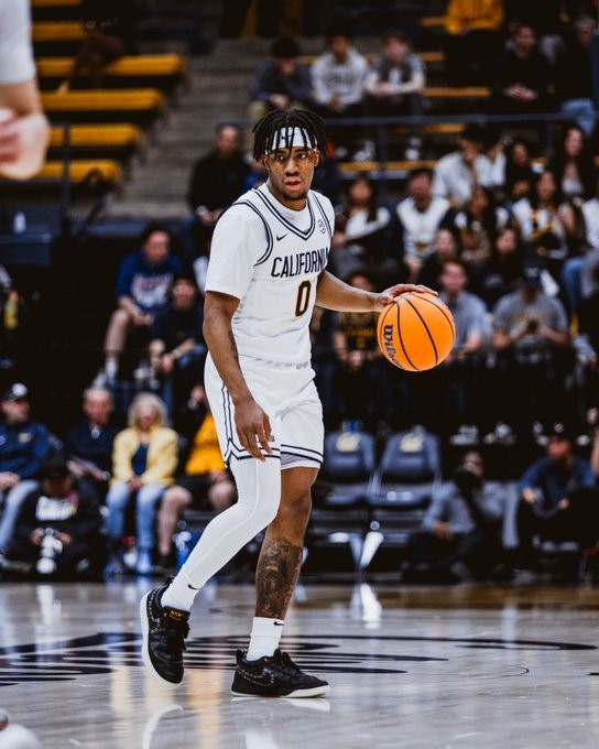 Cal Bears Andrej Stojakovic takes warm ups before the game against the Wake Forest Demon Deacons at Haas Pavilion in Berkeley on Sat Feb 8, 2025 (Cal Bears X photo)