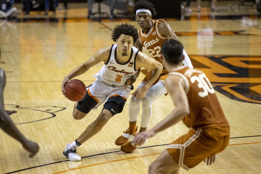 #1 Oklahoma State (12-5) ranked No.7 defeated the Texas Longhorns (11-5) ranked No.5 75-67 in double overtime. Oklahoma State’s Kalib Boone led in scoring with 22 and was followed by Cade Cunningham 19 points for the win.