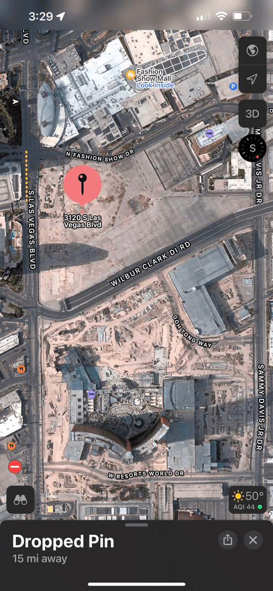 One of the proposed locations on the Las Vegas Strip for a new Oakland A’s ballpark. One location at the Las Vegas Festival Grounds and the other is at Resorts World as the photo indicates here (photo by google maps)