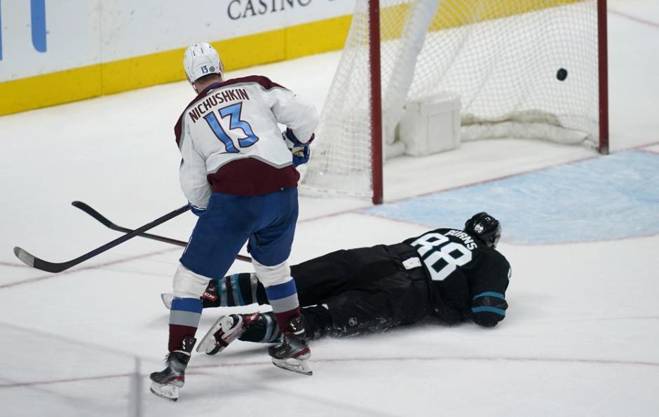 Rudolfs Balcers scored the next Sharks goal at 8:45. Thomas Bordeleau won a race to the puck and carried it behind the net for a quick pass up to Balcers in front of the net.