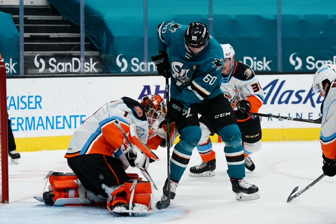 San Jose cut the lead to a one-goal game with 33 second left. With Melnichuk pulled for an extra attacker, Ryan Merkley fed a pass over to Blichfeld at the left slot. Blichfeld blasted a shot past Ericksson-Ek for his second goal of the night and fifth of the season.