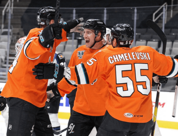 San Diego answered San Jose’s goals with three of their own to close out the first period. Alex Broadhurst scored on a breakaway (that would be theme of the game as the ‘Cuda gave up four breakaway goals on five chances) at the 11:25 mark. Blake Pietila and Daniel Sprong were credited with assists.