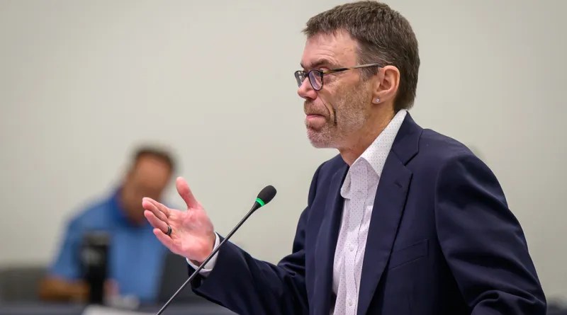 Sandy Dean Oakland A’s owner John Fisher business partner addresses the Las Vegas Stadium Authority on Thu Jul 18, 2024 (LV Sports Biz.com photo)