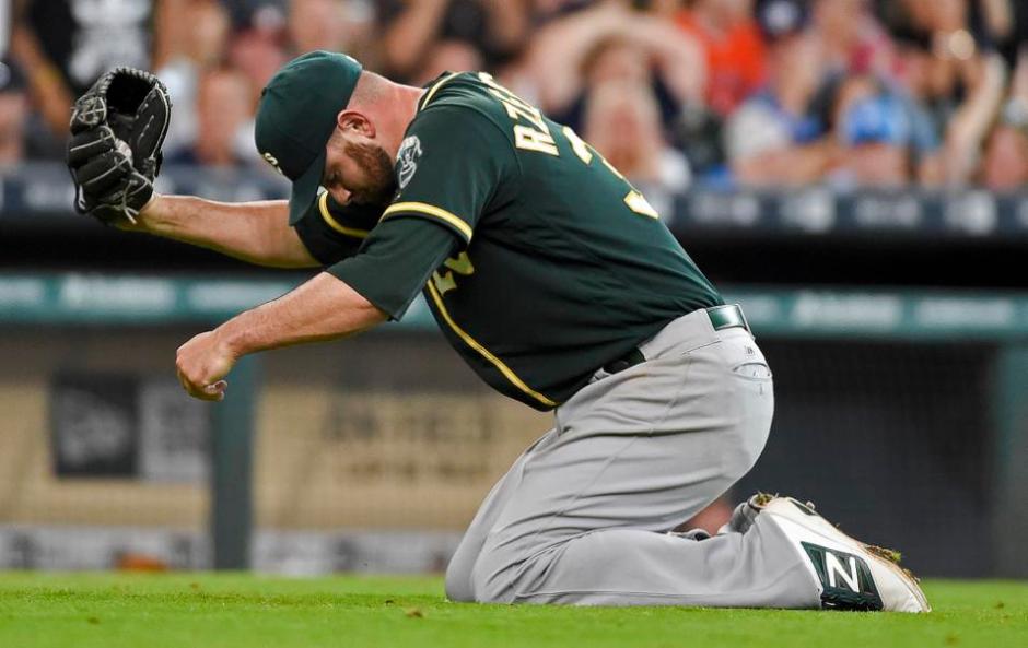 With the loss, the A’s fell a season-worst 9 ½ games off the pace in the AL West, and they’ll need to wait at least until Tuesday in Milwaukee to get their first win on this eight-game road trip.