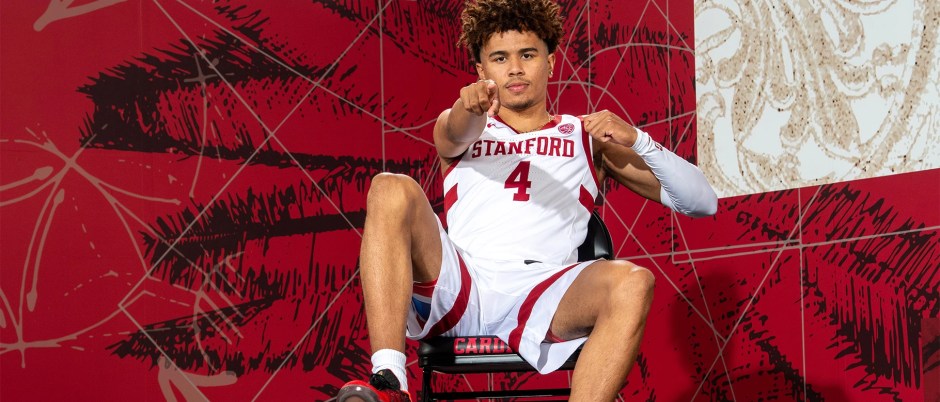 Stanford Cardinal guard Oziyah Sellers (4) led the Cardinal in scoring on Mon Nov 4, 2024 against the Denver Pioneers at Maples Pavilion in Palo Alto (Stanford Cardinal photo)