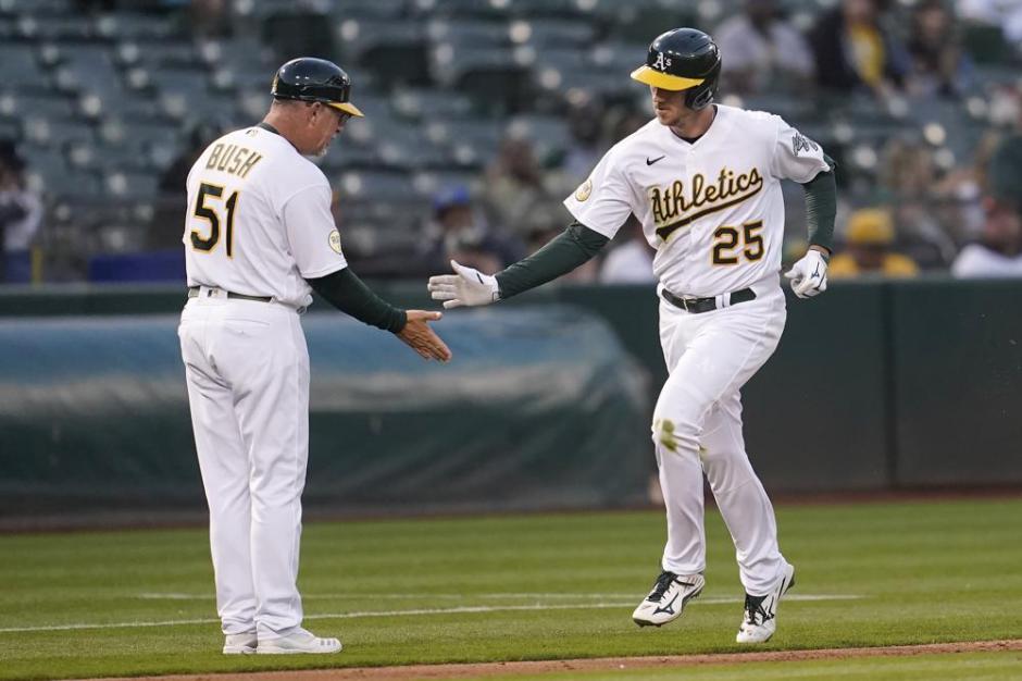 Alejandro Kirk drove Guerrero in with a single to right, but Vimael Machín’s magnificent diving grab of Lourdes Gourriel, Jr.’s drive down the left field line and fast, accurate throw to first saved Irvin’s bacon and kept Oakland ahead, 3-1.